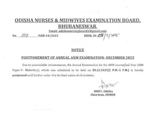 ସ୍ଥଗିତ ହେଲା ANMର ଦ୍ୱିତୀୟ ବର୍ଷ ଆଜିର ପରୀକ୍ଷା
