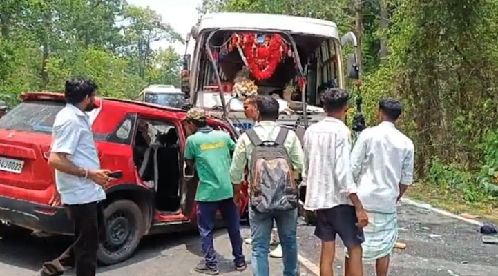 ଠାକୁରମୁଣ୍ଡାରୁ କରଞ୍ଜିଆକୁ ଯାଉଥିବା ଏକ ବସ୍ ସହ ବିପରୀତ ଦିଗରୁ ଆସୁଥିବା କାର ମୁହାଁମୁହିଁ ଧକ୍କା ହୋଇଥିଲା। ଭୟଙ୍କର ଧକ୍କାରେ କାରରେ ଥିବା ୩ ଜଣଙ୍କ ଘଟଣାସ୍ଥଳରେ ମୃତ୍ୟୁ ହୋଇଥିଲା।